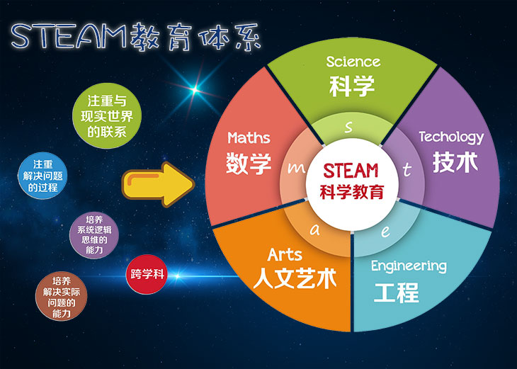 使用目前改良版STEAM教育體系來完成課程,培養孩子的科學、技術、工程、人文藝術、數學方面的學識
